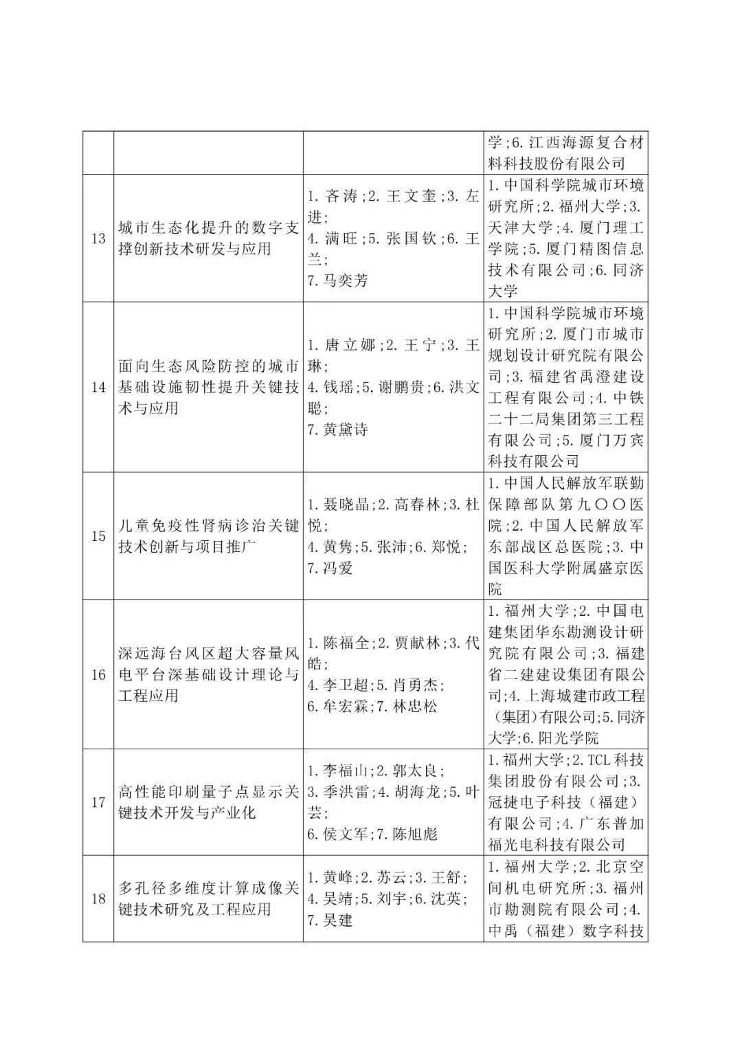 日前,根据《福建省科学技术奖励办法》有关规定,省科学技术奖励委员会组织对2024年度福建省科学技术奖进行评审。经研究,决定对2024年度在科学技术进步活动中作出重要贡献的科学技术人员和组织给予奖励。