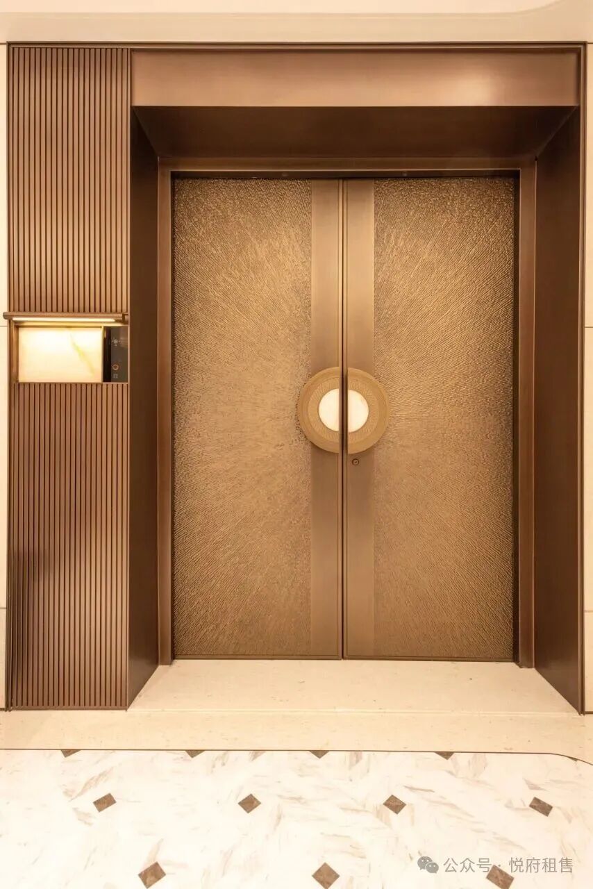 中海深湾玖序(公区)展示:电梯间的交标,全石材