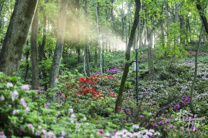 春天登宝塔山,一定要选西麓的杜鹃谷路,每到四五月,姹紫嫣红的各色杜鹃会铺满整个山坡,走在山道间仿佛闯入绿野仙踪,随手拍都是童话。