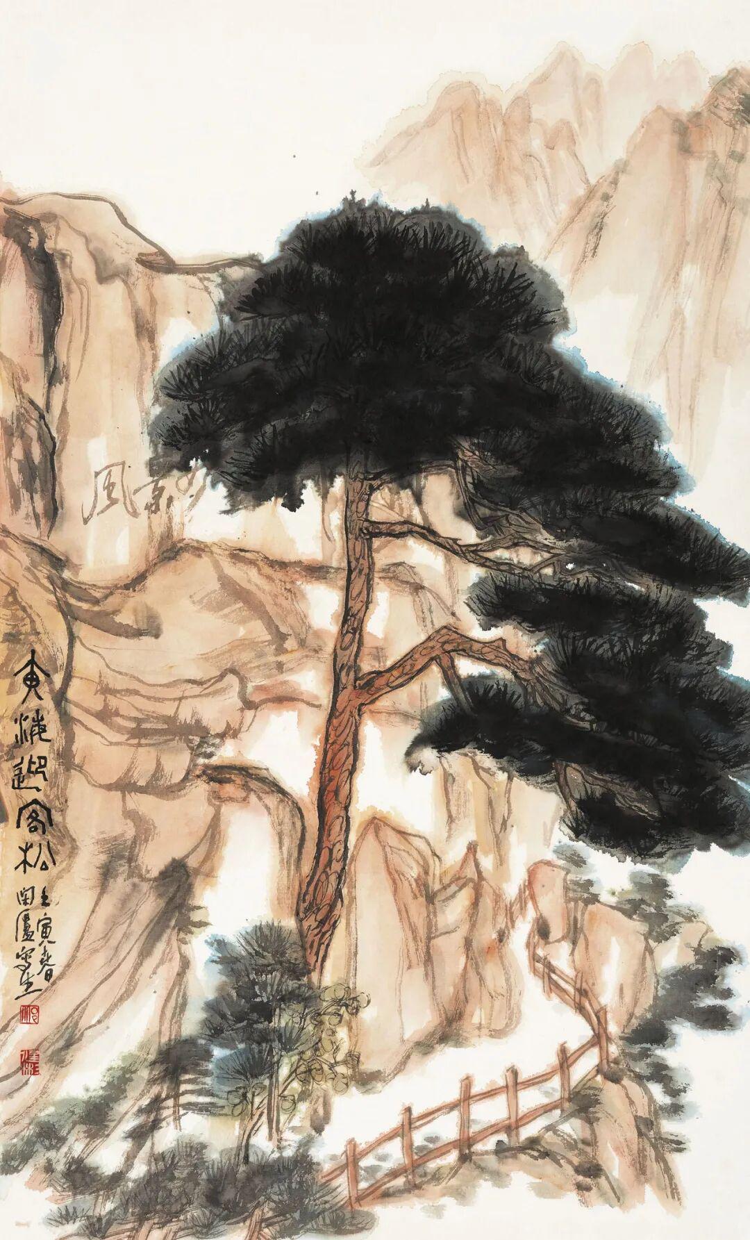 邱健彬《黄海迎客松》98cm×60cm 纸本设色 2022年