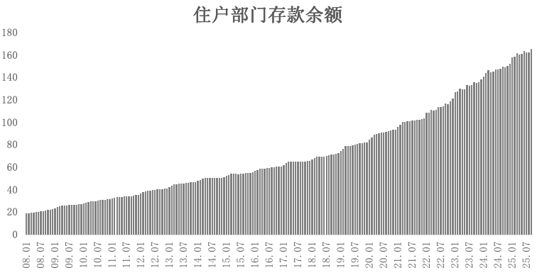 我们先看走势图:这是全国住户部门存款余额(也就是存款总规模)的总体走势图。