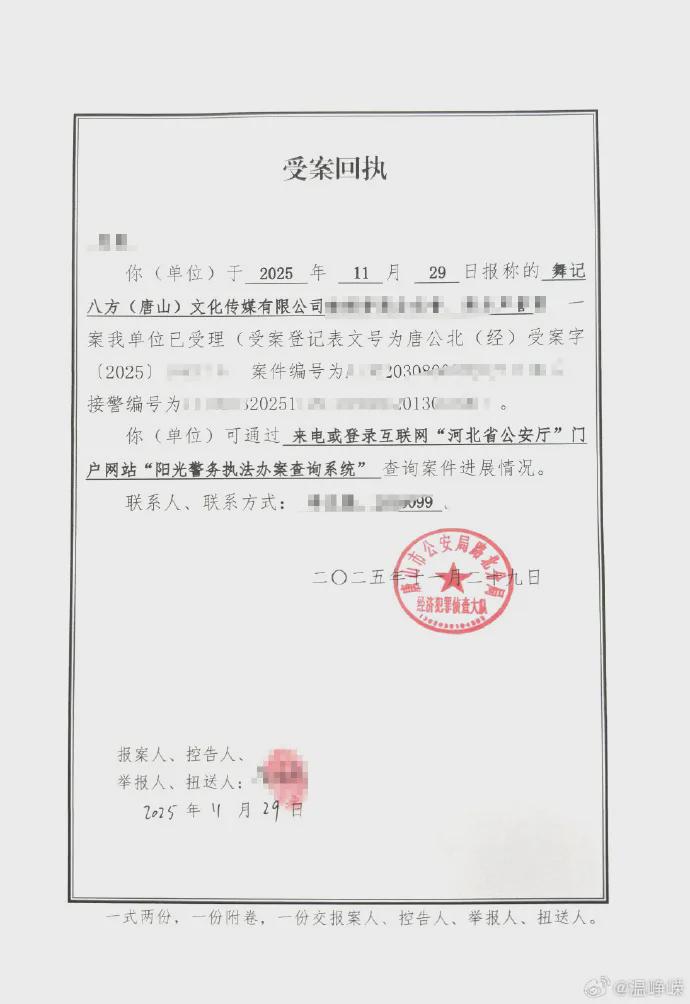 12月1日,演员温峥嵘发文称报警立案,并发出严正声明,部分内容如下: