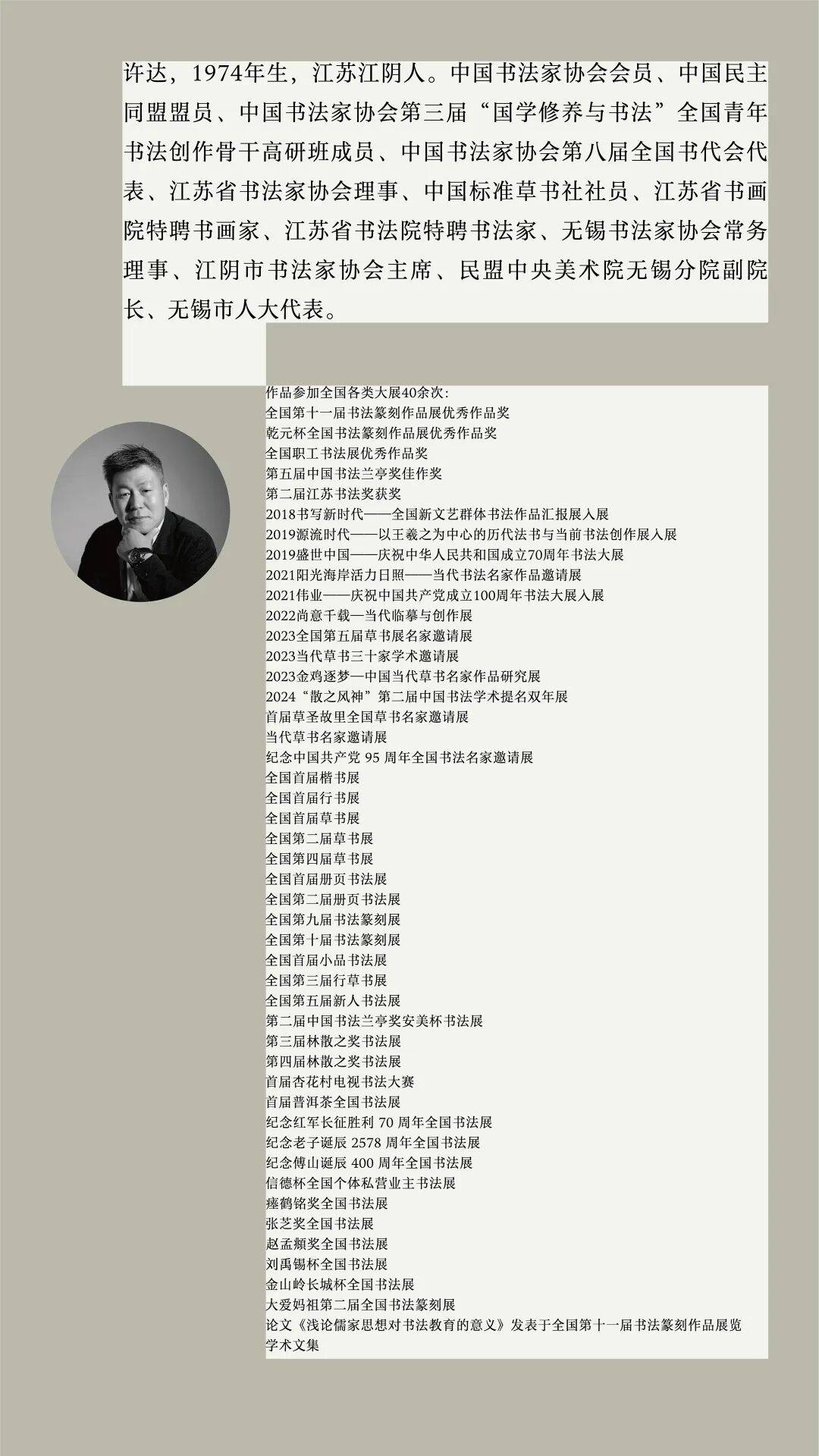 八月初,余往澄江,与许达会于霞客镇,筵前匆匆通数语,及归,微信传字以示,余并指伸缩细瞩,一派天机流屏。笔骨丝游,若流水带叶,婉转于涧壑;又若轻舟绕霞,情动于纸间;兴之所往,走笔成章;静如寒梅卧枝,动如飞鸿掠影;行笔振迅,取势排宕,筋脉有势,姿媚横生;临二王书谱,援笔尽肖,究于晋唐笔法,力赴一画之杪;古今嫁接,间以己意,合一家于纸上;大字裹尽笔势,用尽腕力,草意大于法,又不废偏锋,时取狂素一二,其胸中所储,渊乎于魏晋,贯乎于唐宋;枝蕾破香,殊可足观。识书者观得气象神韵,不识者束于点画架构,此安可与浅人道哉!