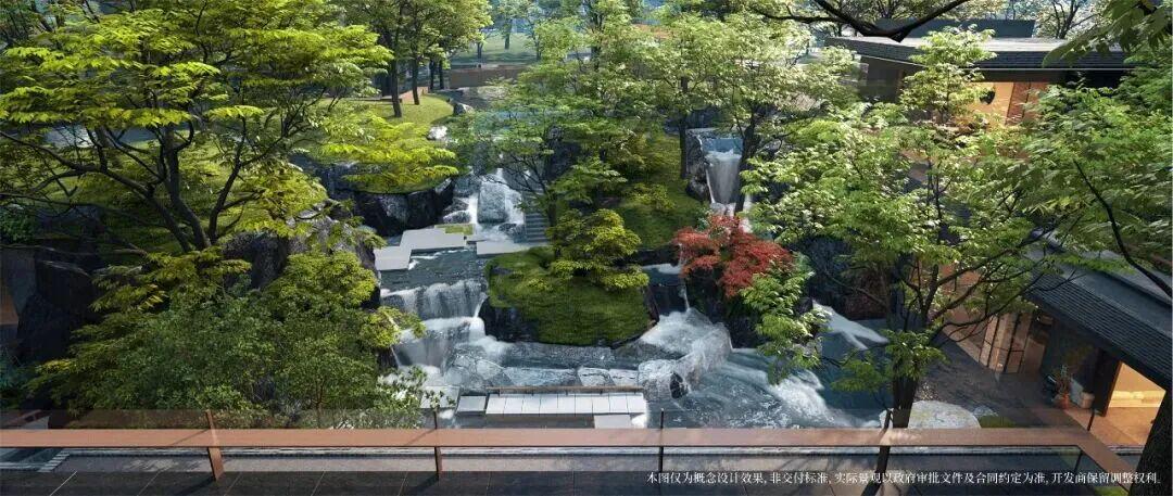 园林内设置的多种山水形态,包括山、瀑、湖、溪、丘、林、峡等,营造出 "一步一景、居游如画" 的沉浸式体验。