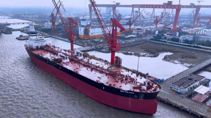 外高桥造船交付15.8万吨苏伊士型原油轮“海洋北极星”轮。彭程 摄
