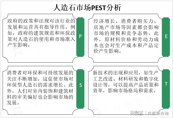 社会因素(Social):社会因素对人造石市场的需求和趋势产生影响。消费者对环保和可持续发展的关注不断增加,这促使市场对环保型人造石的需求增长。此外,人们对室内装饰和建筑材料的审美偏好也会影响市场的发展。