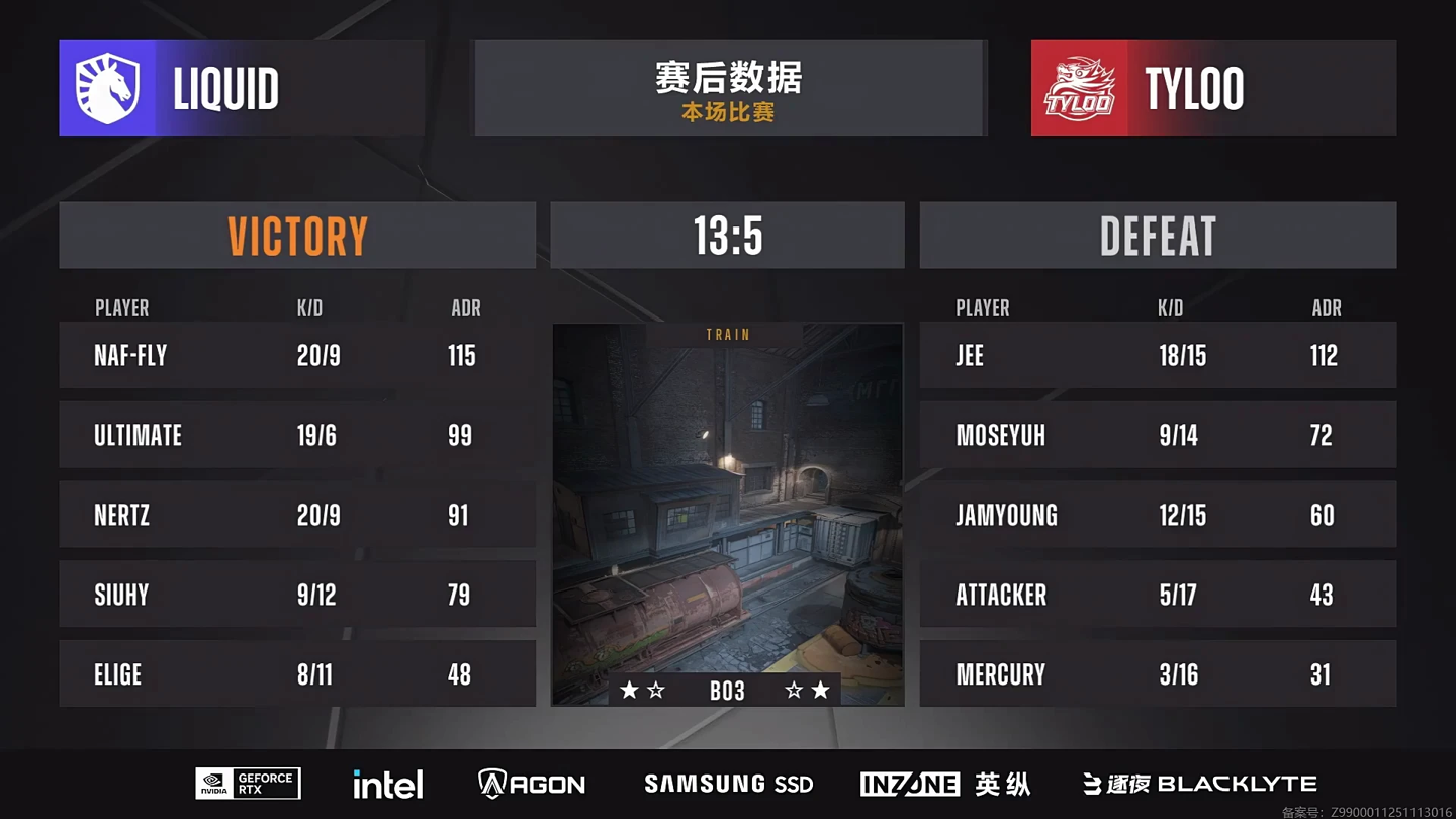 TYLOO 在与 Liquid 的对决中首先以 13:9 的比分拿到远古遗迹 (ancient) 的胜利;但很快在自己的选图列车停放站 (train) 上被 Liquid 以 13:5 扳回一城;而到了决胜地图炼狱小镇 (inferno),尽管 TYLOO 率先拿到四个赛点但还是被 Liquid 拖入加时,最终 14:16 输掉比赛。