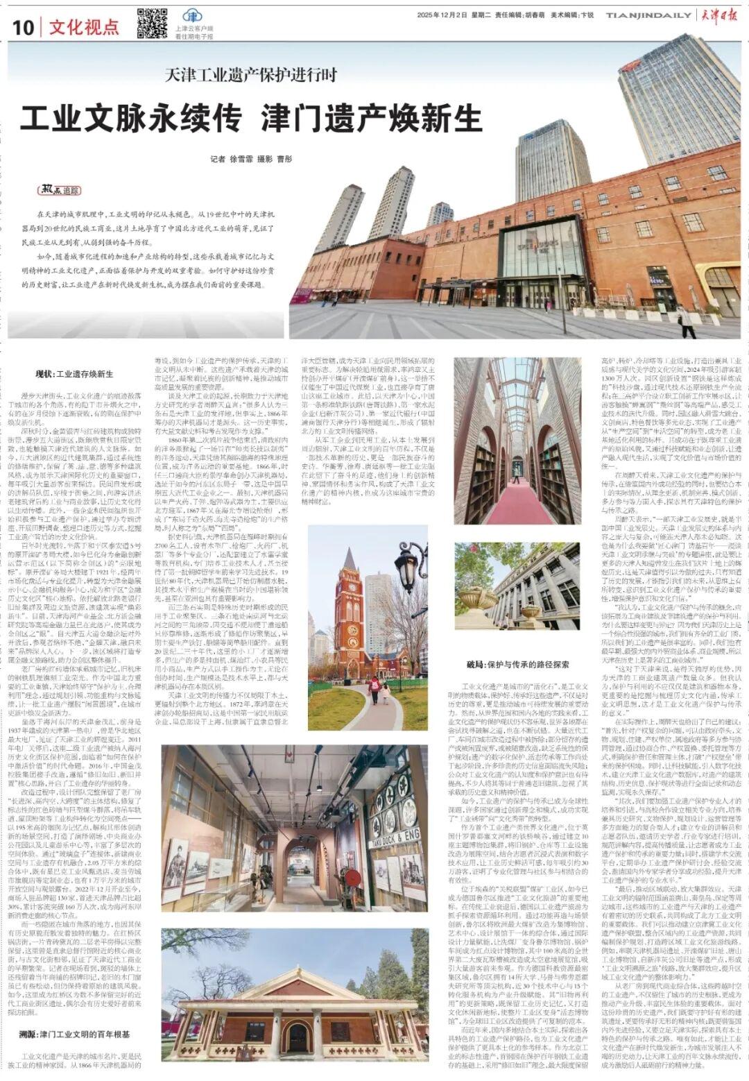 “这对于天津来说,是得天独厚的优势,因为天津的工商业建筑遗产数量众多。但我认为,保护与利用的不应仅仅是建筑和器物本身,更重要的是挖掘与梳理历史文化内涵,传承工业文明思想,这才是工业文化遗产保护与传承的意义。”