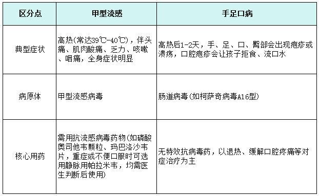 据悉,甲流和手足口病都以高热为主要症状,但它们是两种完全不同的疾病,用药更是天差地别——用错药不仅没用,还会耽误病情。那么,如何判断孩子是甲流还是手足口病?王进雅教大家一个简单的“初步区分法”(最终确诊还是要靠医生):