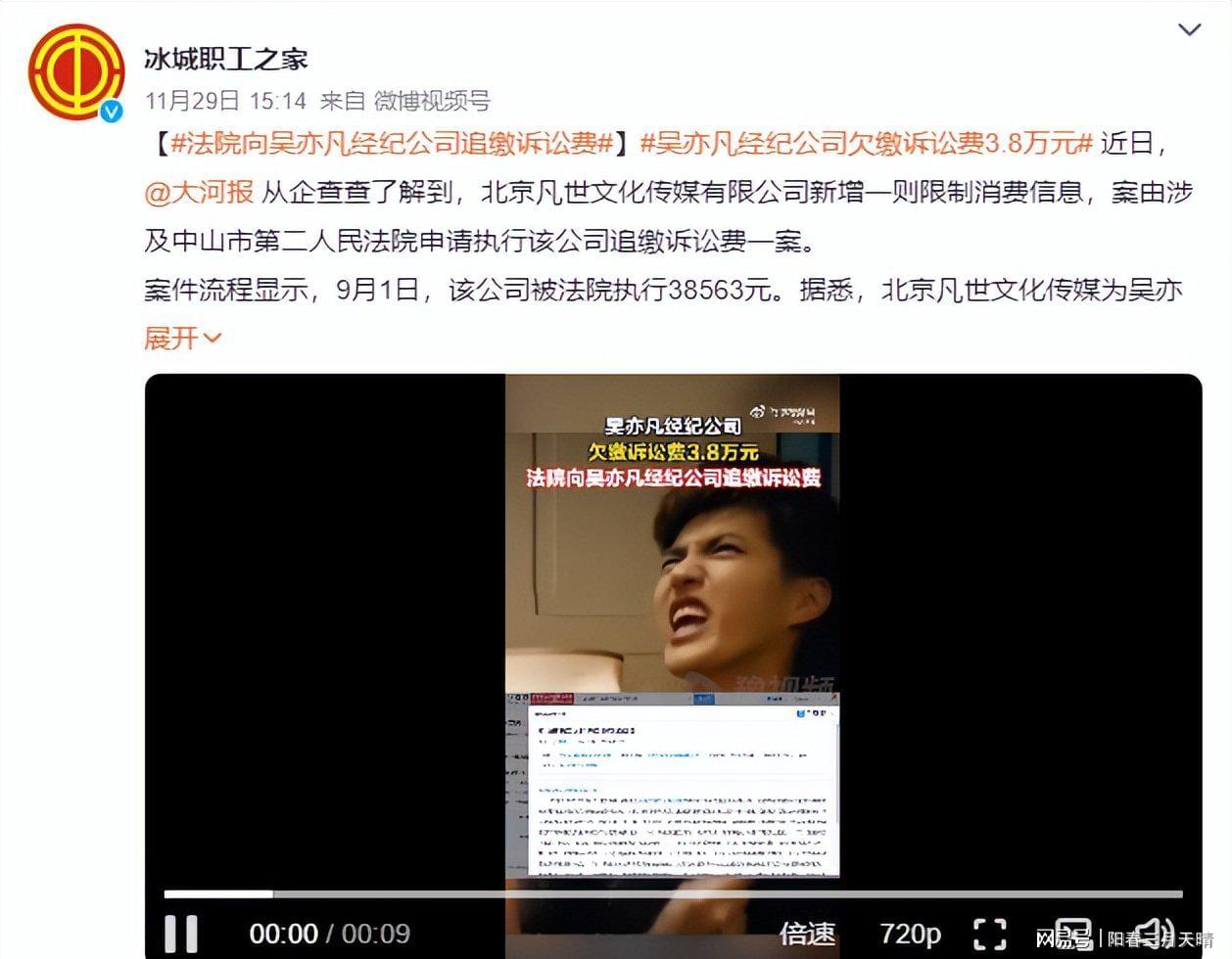 11月28日,一则法院向吴亦凡的北京凡世文化传媒有限公司追缴诉讼费达3.8万元的消息引发关注。
