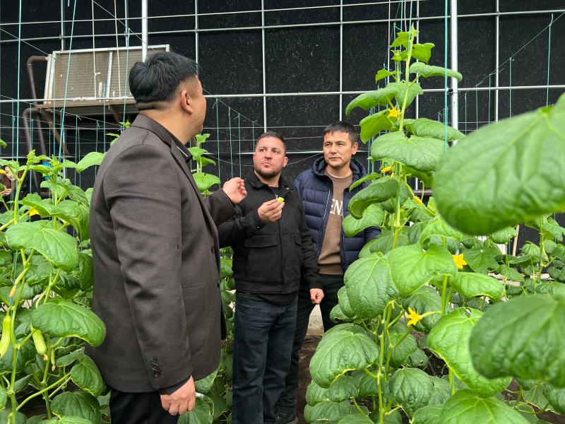 11月28日,位于精河工业园区的新疆雪里红农业种植专业合作社的智慧大棚内生机盎然。来自俄罗斯、哈萨克斯坦的客商代表团深入大棚,实地考察现代化农业设施的运行情况。在挂满果实的蔬菜种植区,客商们俯身仔细查看新鲜采摘的螺丝椒、黄瓜等作物,并就大棚建设成本、亩产规模、种植技术及销售渠道等关键信息,与合作社工作人员进行了深入交流。