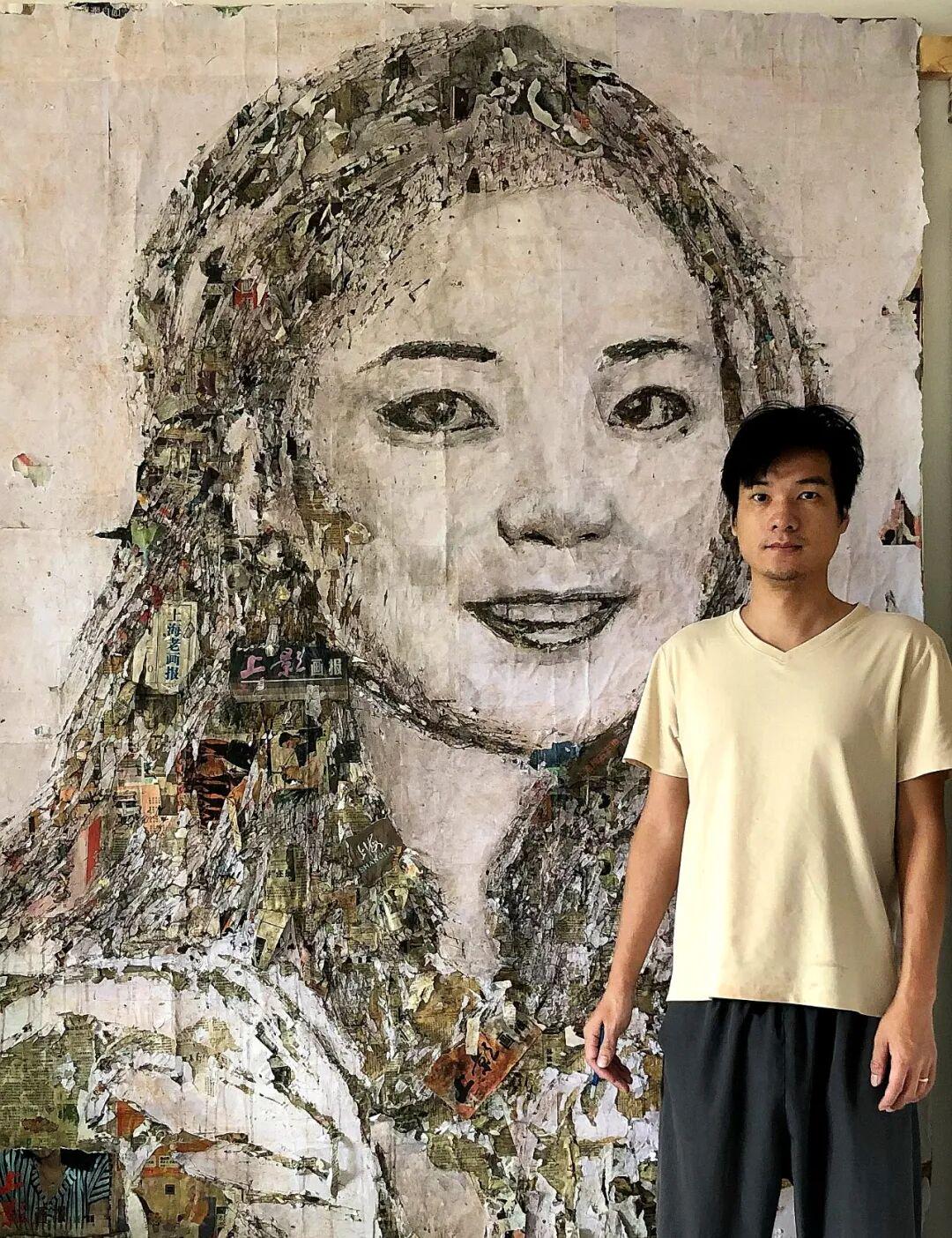 近日,广东河源市连平县90后青年小伙刘锡龙在上海图书馆从海报当背景的白纸上撕出“邓丽君”的画像作品。