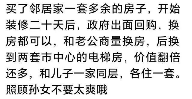 06年的时候,手里有个六万块钱,丈母娘家里房子翻修,想问我借钱,我跟老婆一合计这钱借给她就没有了,第二天就买了隔壁小区一个老破小,没有房产证,早期分配给老师当宿舍的,六万八,还问朋友借了点钱。然后就出租给人家,每年才两千多块钱。结果12年拆迁,拆了126万,老婆直夸我。