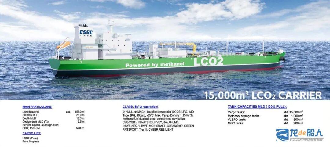 该船型配备4个独立C型货舱,兼容CO₂与LPG运输。支持传统燃料与绿色甲醇双燃料驱动,配置容量为1,000立方米的甲醇储罐,主机的日燃油消耗量约为18.1吨/天;在甲醇模式下约为34.4吨/天,是碳中和路径上的创新载体。