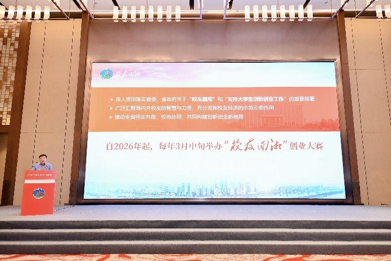 据悉,“校友回湘”创业大赛将自2026年起,每年3月中旬举办。2026年大赛将以“智汇潇湘,创羸未来”为主题,精准对接湖南“4x4”现代化产业体系 ,推动创新链、产业链、资金链、人才链深度融合,致力于打造一个在全国具有显著影响力的省级校友创新创业平台。