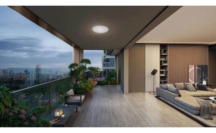 平墅产品建筑面积约149/178㎡,以“空中庭院”和无界窗墙比为亮点,突破传统平层空间局限,实现户户有院、内外景致交融。