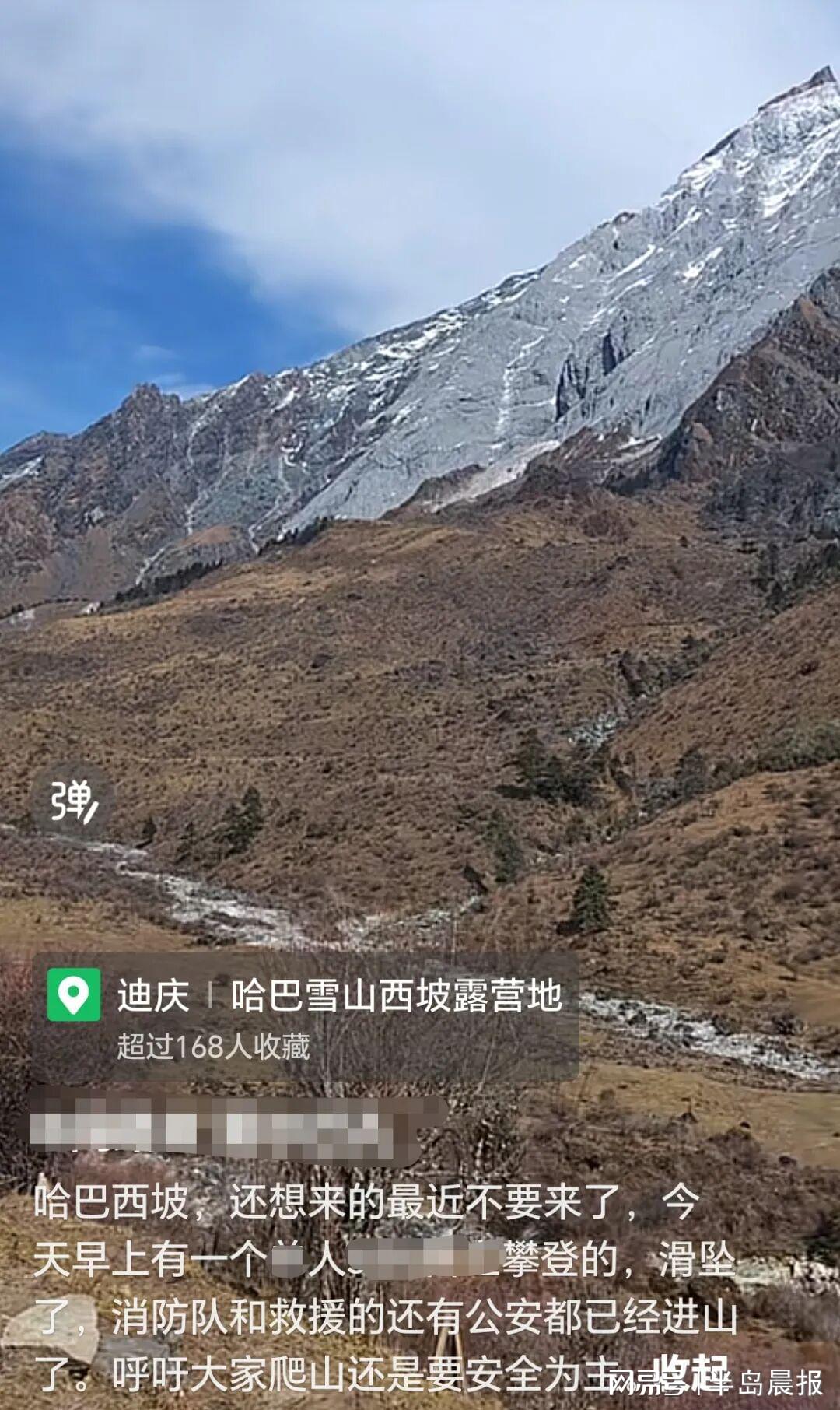 当地有关部门工作人员向记者证实,确实有人在哈巴雪山滑坠失联,目前已在搜救。