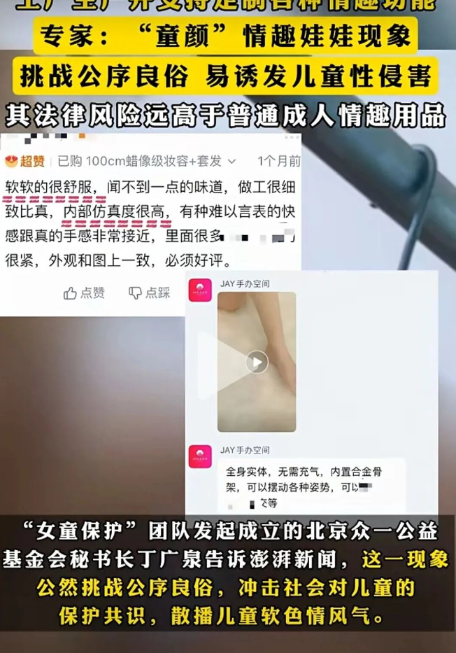 今天媒体报道了一个事,揭秘了电商平台售卖幼女款“情趣玩偶”。