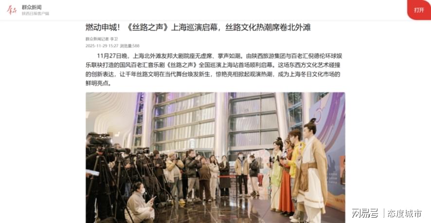 当晚,剧院内座无虚席。灯光暗下,实景道具与裸眼3D技术呈现出千年丝路的壮丽画卷,吸引了众多媒体的争相报道。