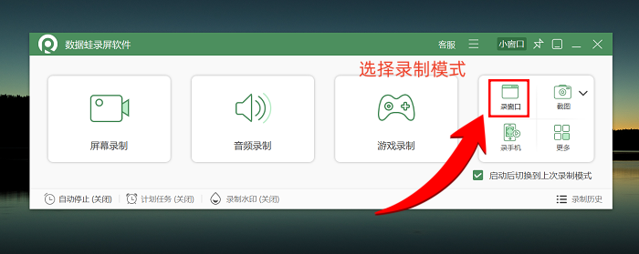 步骤1. 先在电脑上打开该软件,进入主界面后,会发现“全屏录制”“区域录制”“游戏模式”等多种录制模式选项。请结合自身的录制需求,点击选择合适的模式。