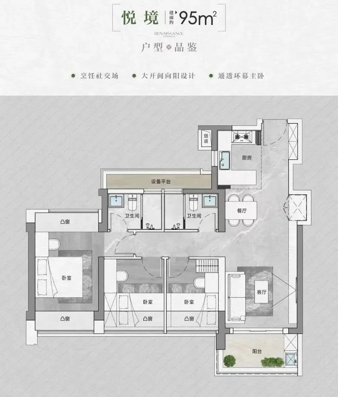 面积:90-143平(3-4房)