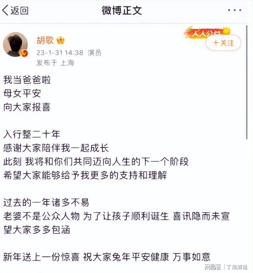 近几年一直被催婚的胡先生,在2年前,突然官宣了自己当爸爸了。