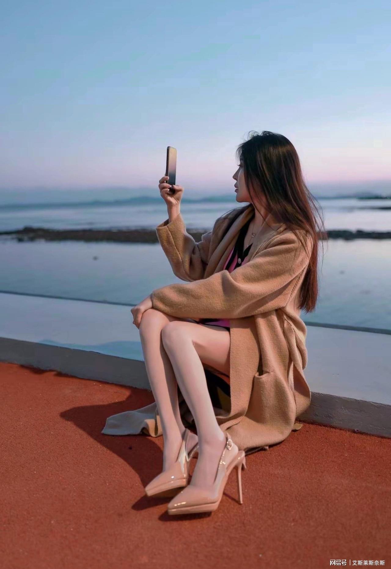 驼色羊绒大衣裹着海风的温柔,裸色细高跟叩响海岸的节拍,肉丝袜晕开恰到好处的柔焦感,每一帧都像被上帝按下慢放键。
