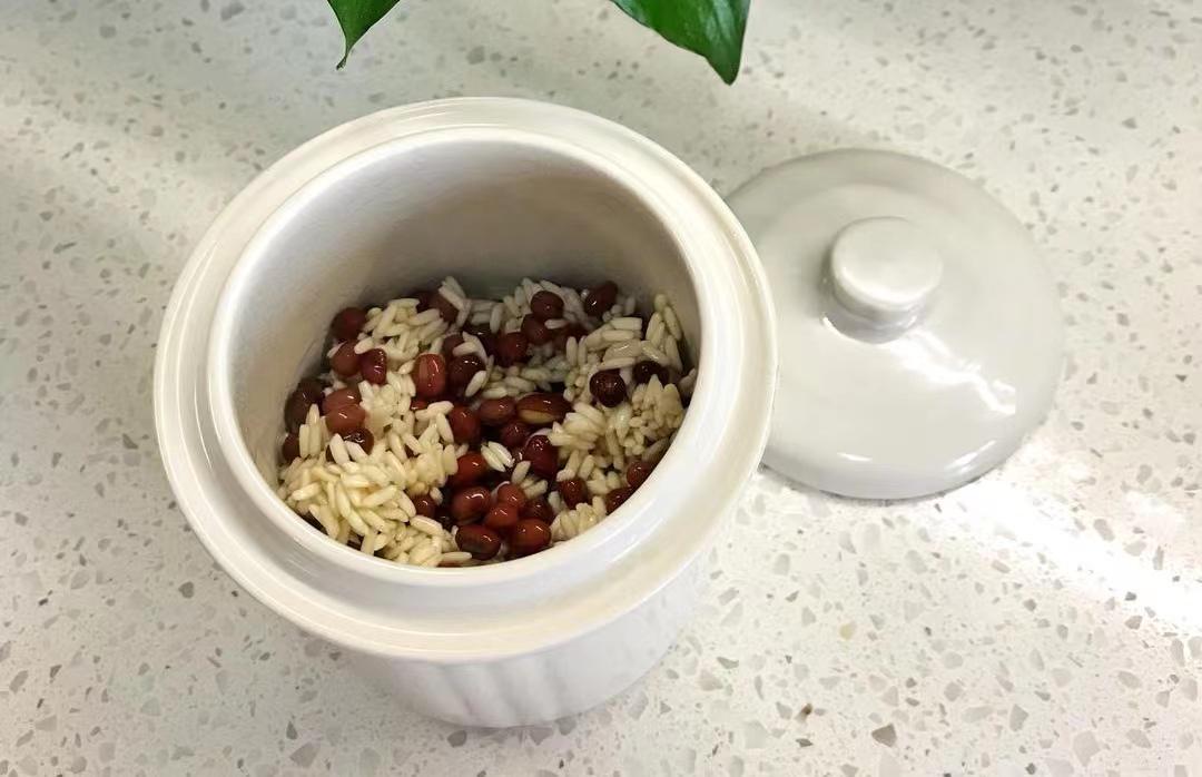 1、首先分别把红小豆以及糯米装到碗里,清洗两三遍后,加点清水泡一会儿。