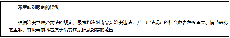 如封存吸毒记录,在中国如此的严刑峻法的毒品打击下,国内现在每年还有上百万人能买得到毒品吸毒,从媒体宣称到警务通告再到社区横幅如此绵密长期的宣称,还是有那么多人会铤而走险或者放松警惕尝试。在这样的情况下,这些法律界的人是基于什么现实基础上会想着给吸毒人员管理撬开一条缝隙的呢?