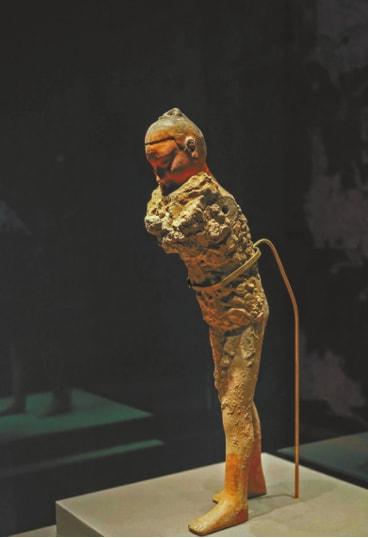 北京考古遗址博物馆的藏品也助力本次特展。一件西汉木手杖,长86厘米,出土于丰台区大葆台一号汉墓。汉代是推崇以孝治天下的时代,约从汉文帝开始,敬老尊老成为一种时尚,并逐渐演变为制度。这件木手杖体现了当时尊老制度中的“赐杖”制度。