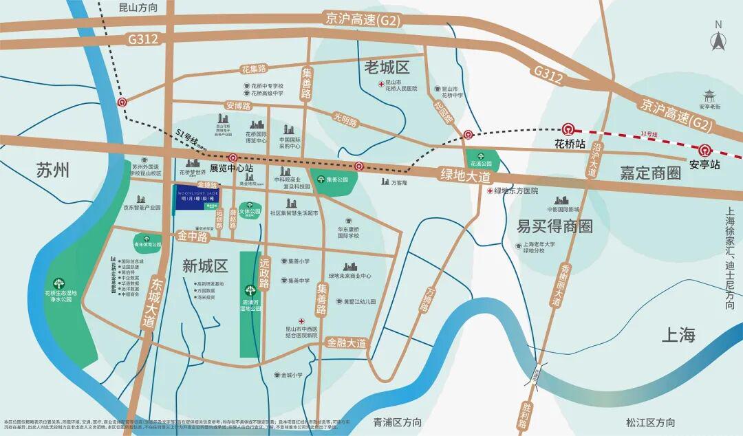 项目位于昆山花桥,说起花桥相比大家都非常熟悉了,它直接与上海嘉定、青浦接壤,与嘉定的安亭仅一路之隔,从地图上看宛如“嵌”在上海。
