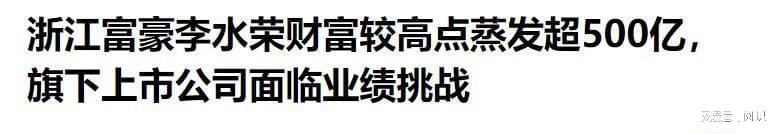 金融界——2025-07-27《浙江富豪李水荣财富较高点蒸发超500亿,旗下上市公司面临业绩挑战》