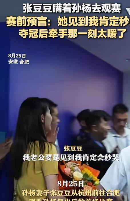 为了给孙杨一个惊喜,也怕自己到场会影响他的发挥,张豆豆做了一个决定,瞒着孙杨偷偷去合肥比赛现场。