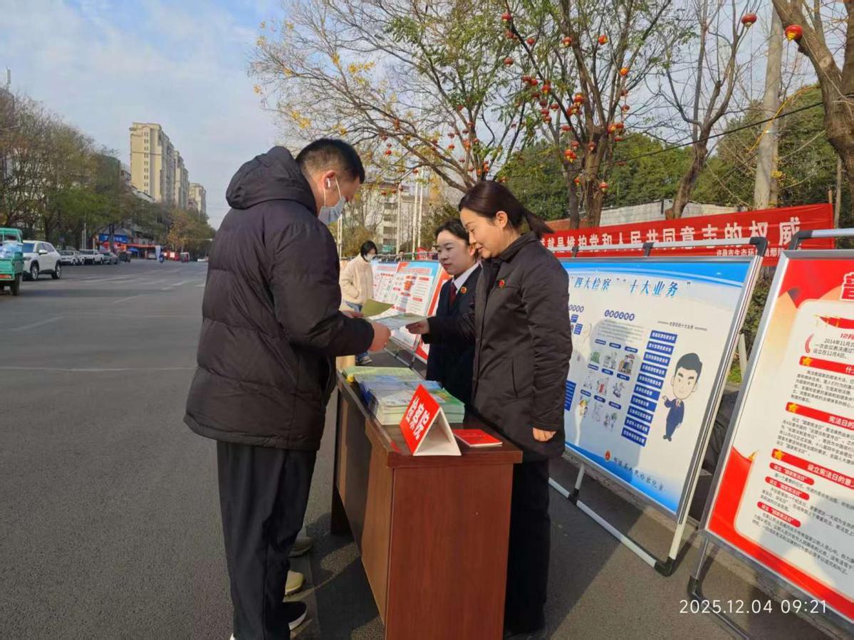 为弘扬宪法精神,维护宪法权威,增强群众尊法学法守法用法意识,12月4日,在第十二个“国家宪法日”当天,河南省许昌市鄢陵县人民检察院积极参与全县单位集中开展的2025年“宪法宣传周”法治宣传活动,组织检察干警走进群众开展普法宣传,让宪法精神落地生根,助力法治鄢陵建设。