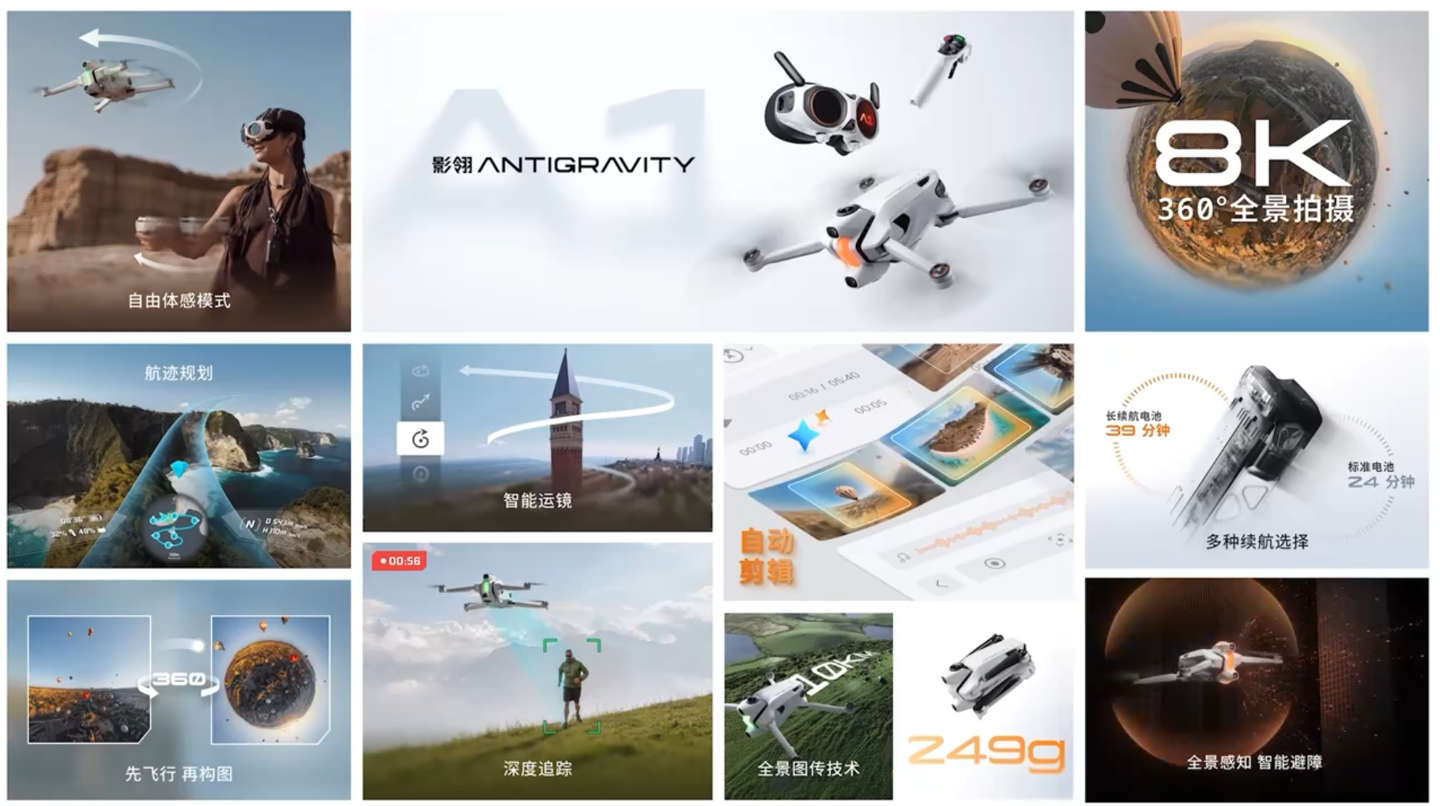 IT之家 12 月 4 日消息,影石 Insta360 与第三方合作孵化的无人机品牌“影翎 Antigravity”今日正式发布 Antigravity A1,这是全球首款 8K 全景无人机。