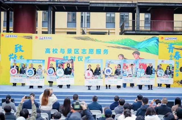 近日,在成都东郊记忆,团省委联合省委社会工作部、省生态环境厅、省交通运输厅、省农业农村厅、省文化和旅游厅等10余家省级单位,共同举办“青春志愿·美在景区”12·5国际志愿者日青年文旅志愿服务省级示范活动,来自四川大学等9所高校志愿服务团队代表与都江堰、青城山等9个重点景区、景点代表现场结对,将持续为青年文旅志愿服务特色小站提供人才和智力支撑。
