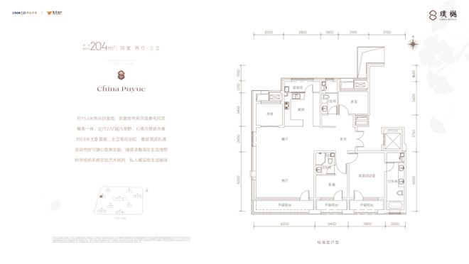 璞樾户型约152㎡起步,188㎡、195㎡、204㎡、230㎡、258㎡等。