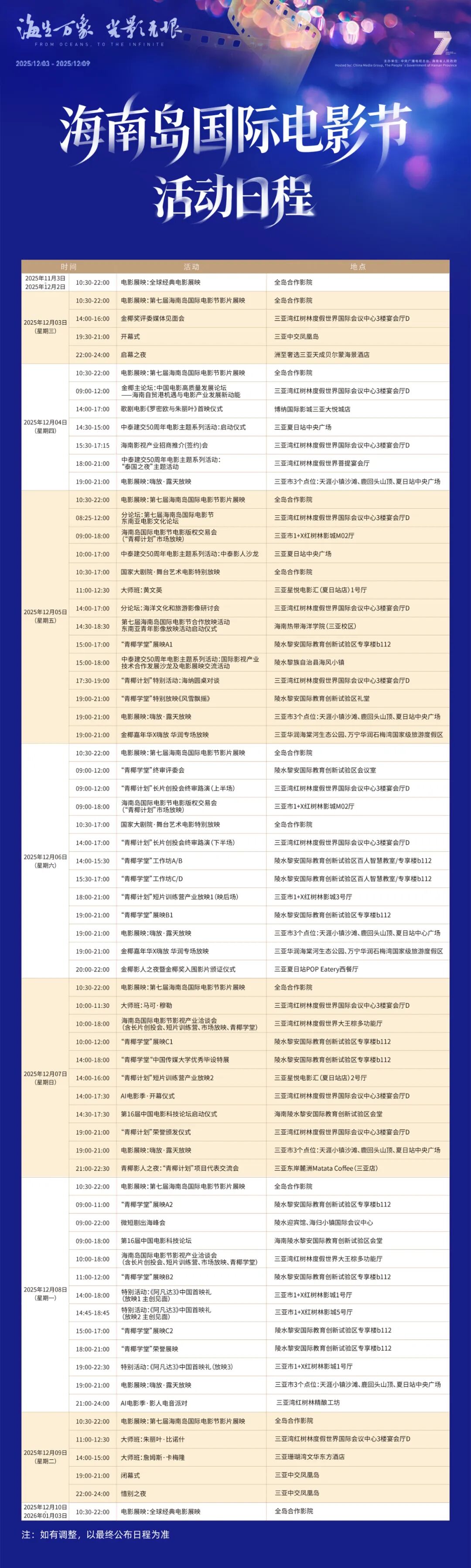 第七届海南岛国际电影节金椰主论坛在智慧交融中圆满落幕。本次论坛由中国传媒大学协办,立足海南自贸港封关运作的历史节点,汇聚产业前沿思考,从构建“海南叙事”到拥抱AI变革,从培育青年人才到拓展全球传播,系统探索了中国电影高质量发展的新动能。与会嘉宾一致认为,海南正以其独特的政策优势与开放基因,成为电影产业创新与国际化合作的关键支点。论坛所形成的共识与路径,不仅为海南自由贸易港的建设贡献电影力量,也为建设电影强国注入海南动能,充分彰显了金椰论坛作为自贸港电影产业智库的独特价值。展望未来,海南将继续以光影为媒,与全球电影人携手,在这片开放的热土上共同书写属于新时代的光影传奇。