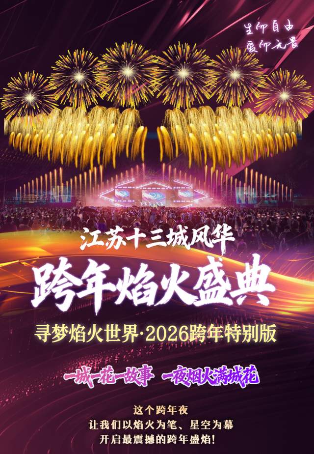 重磅狂欢预告!江苏十三城跨年焰火盛典落户南京!文化厚重感拉满 +潮流互动感爆棚 +新年温暖感超标,这一场沉浸式跨年狂欢,特邀央视春晚创办人张华山执导,携手奥运烟花燃放团队与央视春晚无人机团队共同打造视觉盛典,挑战吉尼斯世界纪录-全球规模最大的焰火秀。12月31日18:30-次日00:06,邀你在漫天璀璨中共赴2026新征程!
