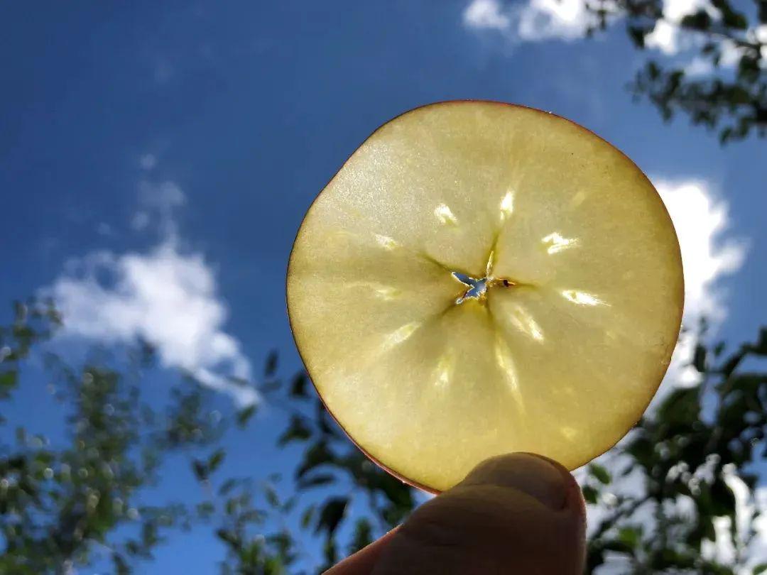 工作室的小伙伴圈圈是个苹果控,一年四季离不开苹果,她吃到样品惊艳道: 这个时候能吃到这么甜的苹果真幸运,我以为到冬天才能吃上呢!