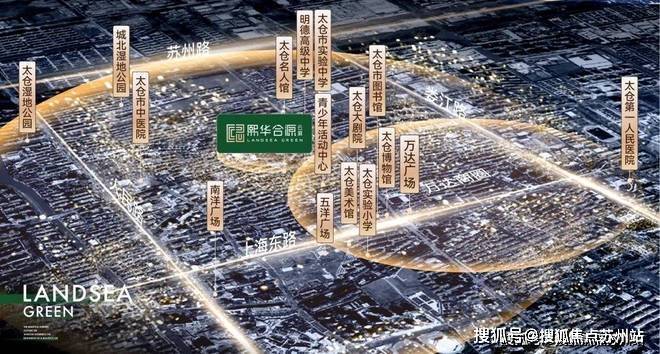 本区位图仅作示意用途,因幅面存在限制,与实际情况或许存在一定差异。本宣传资料所展示的项目与周边环境、公共设施的地理关系示意图,并非完全按实际比例绘制,目的仅为协助提供相关信息,并不意味着公司对此作出任何承诺,最终信息以政府相关发布为准。【周边配套】 - **多维交通**项目周边交通网络十分发达,形成了“两高(沪宜 / 沈海)、两道(204 国道 /339 省道)”的交通格局,还有 5 + 1 轨道枢纽。如此便捷的交通,能让业主高效融入长三角一体化都市生活圈,轻松畅达各地。 - **繁华商圈**此地汇聚了万达、南洋广场、五洋广场等多个繁华商圈,无论是休闲娱乐需求,还是购物消费需求,业主都能在这里一站式得到满足,为生活增添了诸多便利与精彩。 - **书香四溢**项目周边毗邻太仓市实验中学、明德高级中学、太仓实验小学、太仓实验幼儿园等全龄优质教育资源,为孩子营造了良好的学习成长环境,助力孩子在人生起跑线上抢占先机。 - **优质医疗**项目附近有太仓市中医医院、第一人民医院等高端医疗资源,能为业主和家人的健康生活保驾护航,确保大家在有需要时能及时获得专业医疗服务。 - **生态绿境环绕**太仓湿地公园、市民篮球公园、城北湿地公园、滨河公园等天然绿境将项目环绕其中,让业主仿佛置身于绿色的怀抱,尽情享受大自然的馈赠,随时都能与自然亲密接触,放松身心。 - **文化汇聚之地**周边紧邻青少年活动中心、太仓名人馆、太仓大剧院、太仓美术馆、太仓市图书馆、太仓博物馆等文化场所,浓厚的文化氛围丰富了业主的精神文化生活,提升了生活品质。