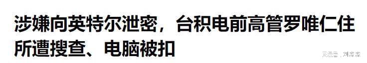 新浪财经-涉嫌向英特尔泄密,台积电前高管罗唯仁住所遭搜查、电脑被扣