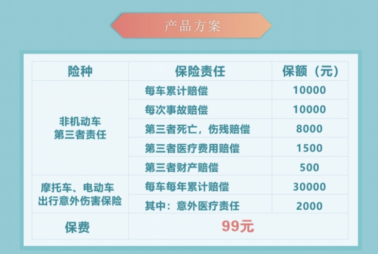 保障全:既能保撞到别人、损及财物的赔偿(全家都能共享这份保障),也能保自己骑行受伤的医疗支出(仅限被保险人本人享受)
