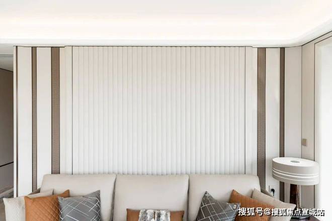 踏入样板间的第一秒,你会发现这里 几乎“看不到一个直角”:墙面转角、吊顶边缘、门套线条,甚至石材台面与柜体边缘,均以流畅圆弧替代生硬直角。