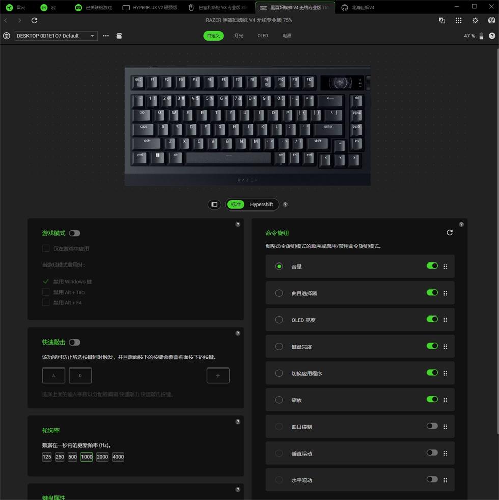 键盘:Razer雷蛇蛛皇黑寡妇蜘蛛V4无线专业版75%三模客制化热插拔键盘