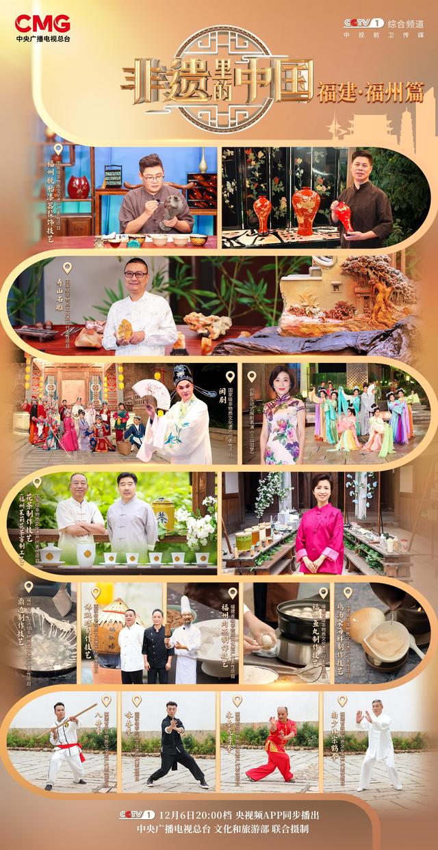 由中央广播电视总台与文化和旅游部联合摄制的大型文化节目《非遗里的中国》福建·福州篇将于12月6日20:00档在总台综合频道(CCTV-1)播出,央视频全网独家首播。