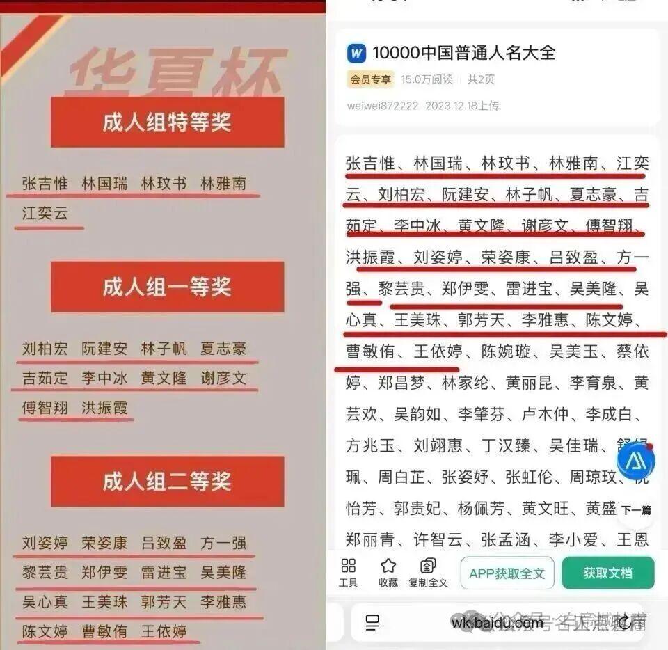 据澎湃新闻报道,记者注意到,《10000中国普通人名大全》有大量名字成批出现在此次的VICTOR 双雄会天津站报名表中。