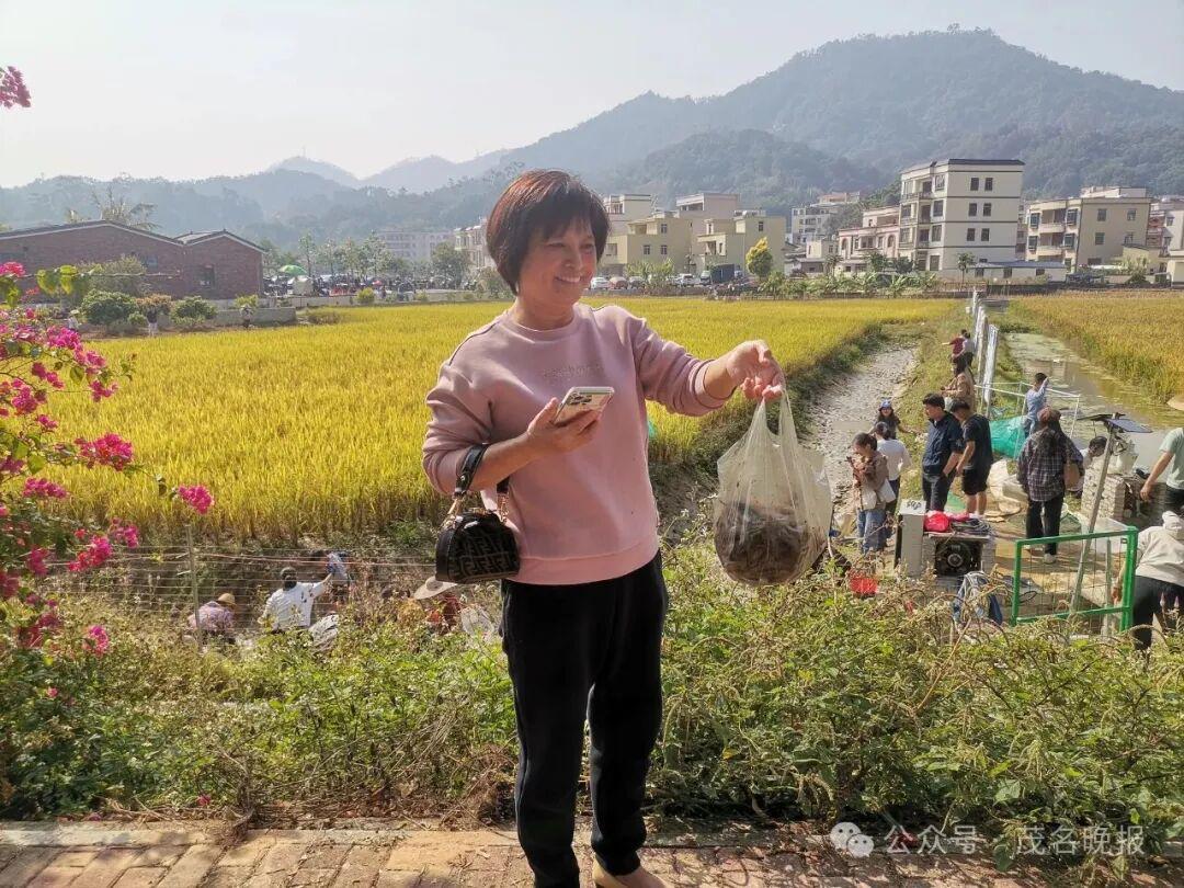 12月6日,茂名信宜市北界镇明堂村举办了首届稻虾节。活动现场最吸引人的莫过于免费徒手捉虾体验,不少家长带着孩子卷起裤腿下田,玩得不亦乐乎。