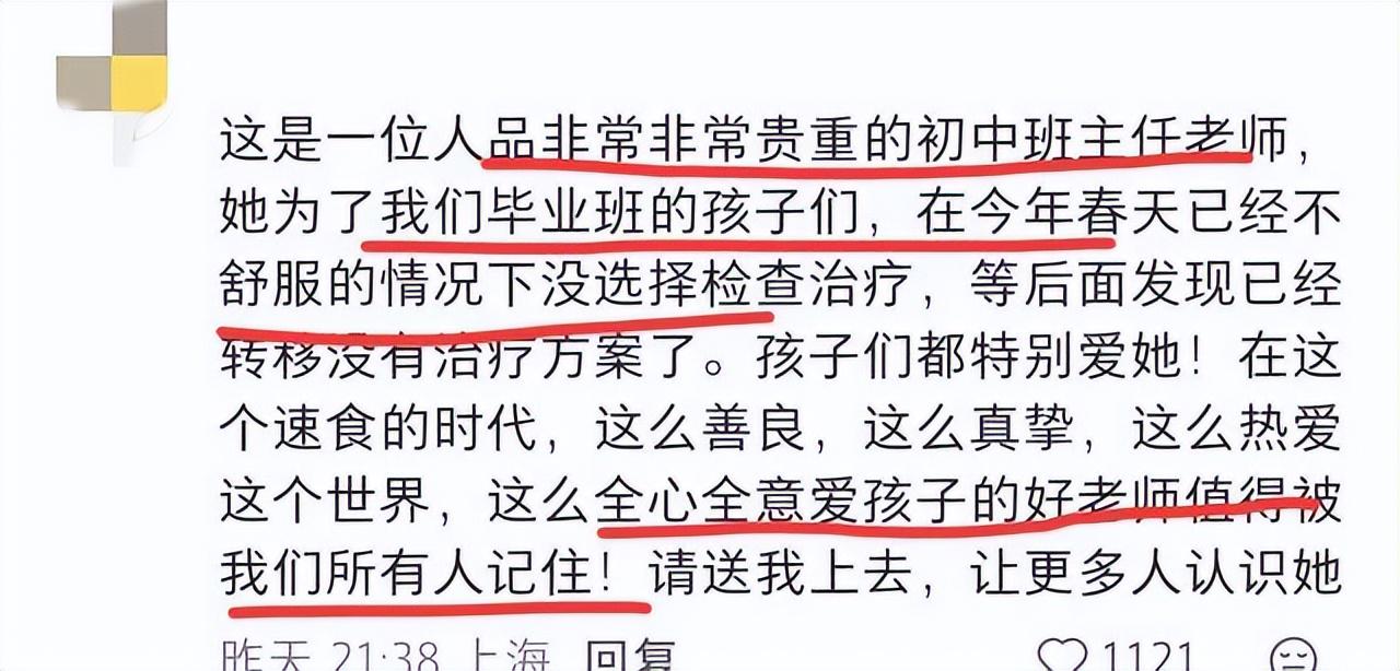 所以才有了留言区无数学生和家长的怀念:“诸老师对我们学生特别好,还会把自己的吃的分给学生。”“备课工作教学都很认真,经常没空吃饭。”“每学期结束还会认真给每一位学生写贺卡。”