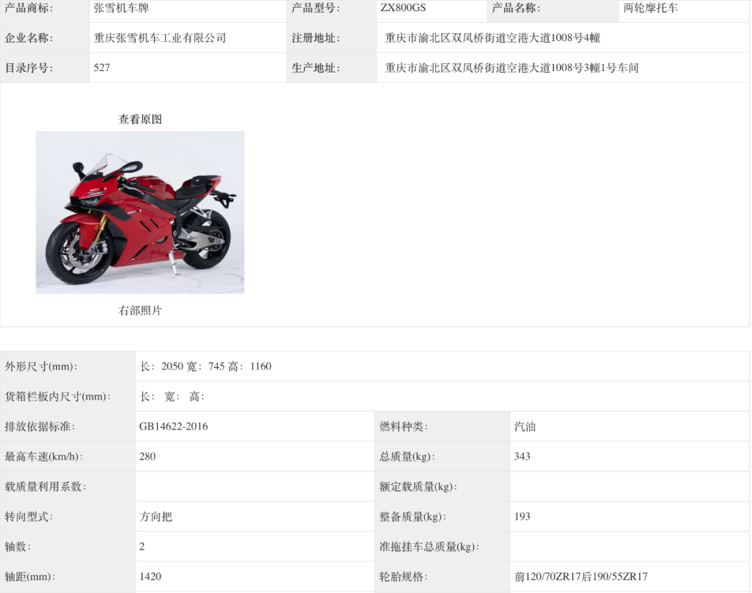 本田四缸 500 的另一个车型,cbr500r 也亮相工信部,除了外观跟 cb500f 不同,其它数据都基本相同。